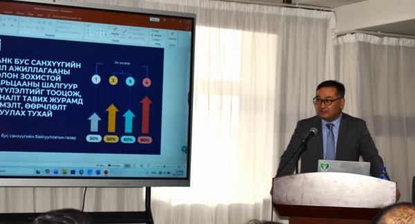 Мөн энэ үеэр Санхүүгийн зохицуулах хорооноос банк бус санхүүгийн салбарт хэрэгжүүлж буй бодлого, арга хэмжээ, салбарын өнөөгийн нөхцөл байдал, тулгамдсан асуудлын талаар мэдээлэл өгч, оролцогчдын саналыг сонслоо.